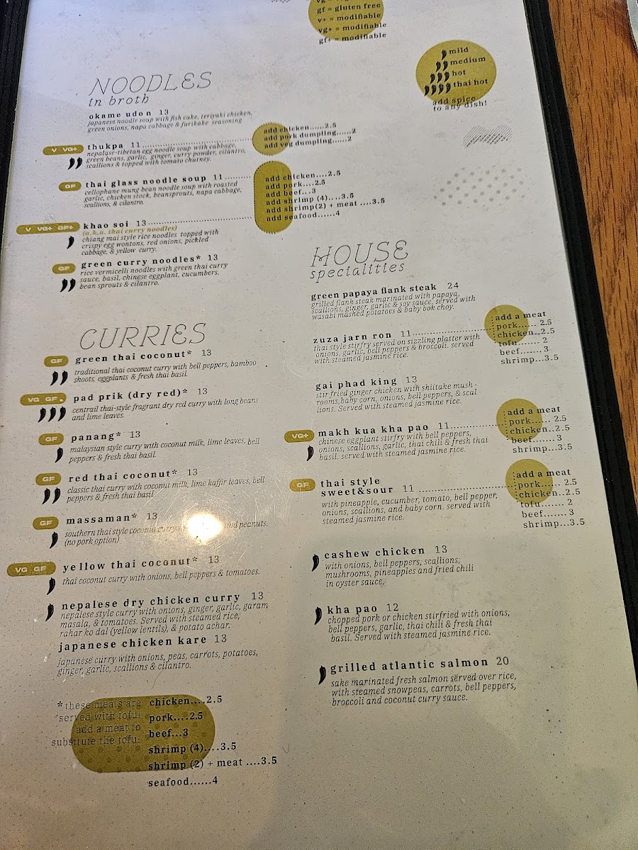 What truly sets Zen Zero apart is its curated menu that balances both classic and unique dishes. From the tantalizing Okame Udon, a Japanese noodle soup adorned with teriyaki chicken, to the robust Thukpa Spicy – a Nepalesetibetan soup bursting with flavors from garlic, ginger, and spicy curry powder – each dish is crafted with care. Savor the Laab, a refreshing chopped chicken salad with a zesty kick, or indulge in the flavorful Pad Thai, featuring unique thin noodles that may surprise your palate. And don’t overlook the delightful Coconut Flan or the Green Tea Ice Cream for a sweet finish that leaves you wanting more.